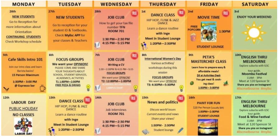 그럼 ILSC 멜번 캠퍼스가 어떤 다양한 액티비티들을 제공하는지 볼까요?