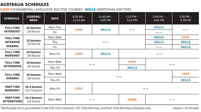 멜번, 시드니, 브리즈번 캠퍼스의 스케줄 입니다.